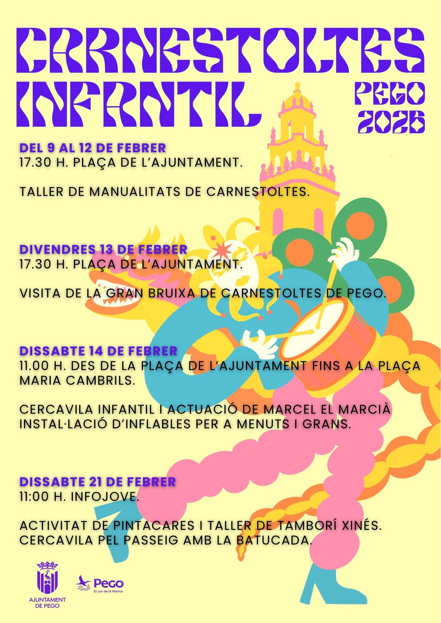 La jornada del Carnestoltes comptarà amb una prèvia infantil que se celebrarà al matí. La tradicional desfilada infantil començarà a les 11:00 hores a la Plaça de l’Ajuntament i comptarà amb la participació de lalumnat dels diferents centres escolars.