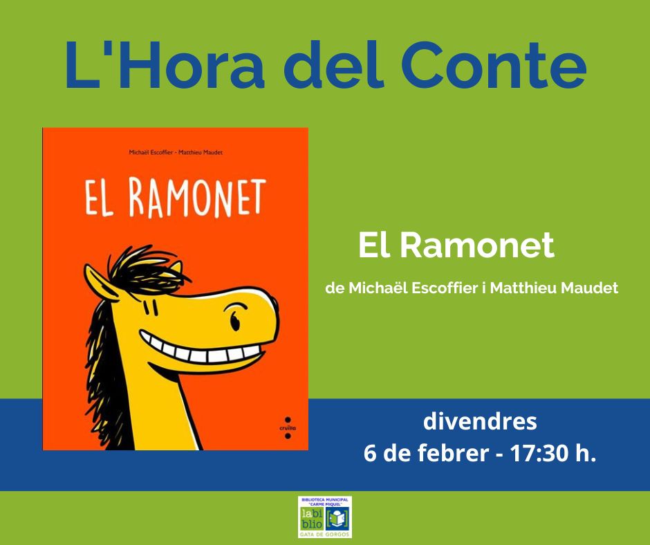 La Biblioteca de Gata de Gorgos ofereix setmanalment L’Hora del Conte, on els menuts gaudeixen d’un conte i una activitat de dibuix. Aquesta setmana el conte serà:📖 “El Ramonet” de Michaël Escoffier i Matthieu Maudet